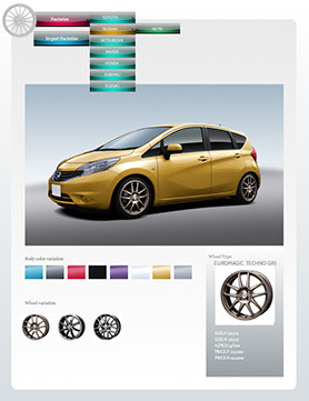 弊社では斜めアングルでカタログカラーバリエーションに準じた車輌カラーを掲載することでより現実に近いホイールシュミレーターを提案しております。